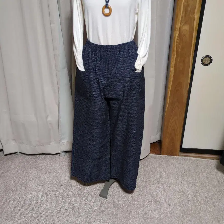 거북이 등 무늬 서생 바지 와이드 팬츠