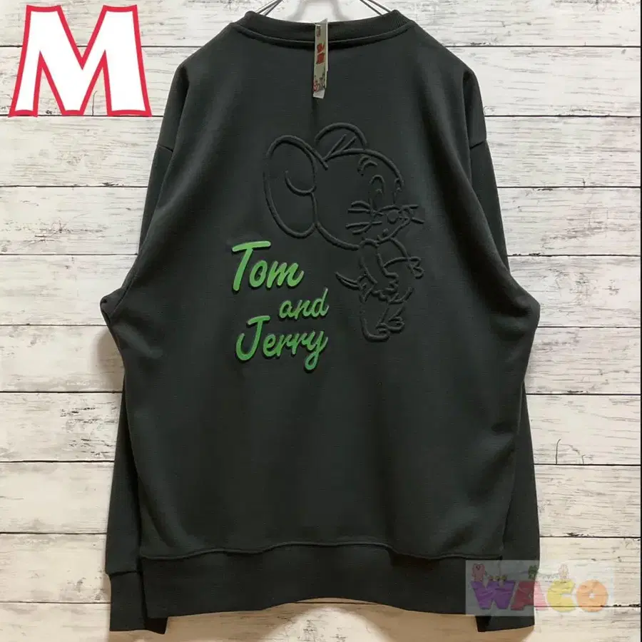 • 톰과 제리 맨투맨 트레이닝복 속기모 M 라이트 그레이 백 상가 자수