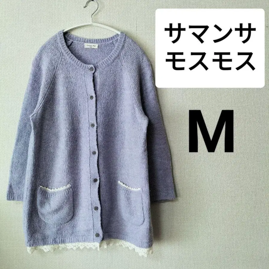 사만사 모스모스 M 사이즈 니트 가디건 퍼플 레이스 긴팔