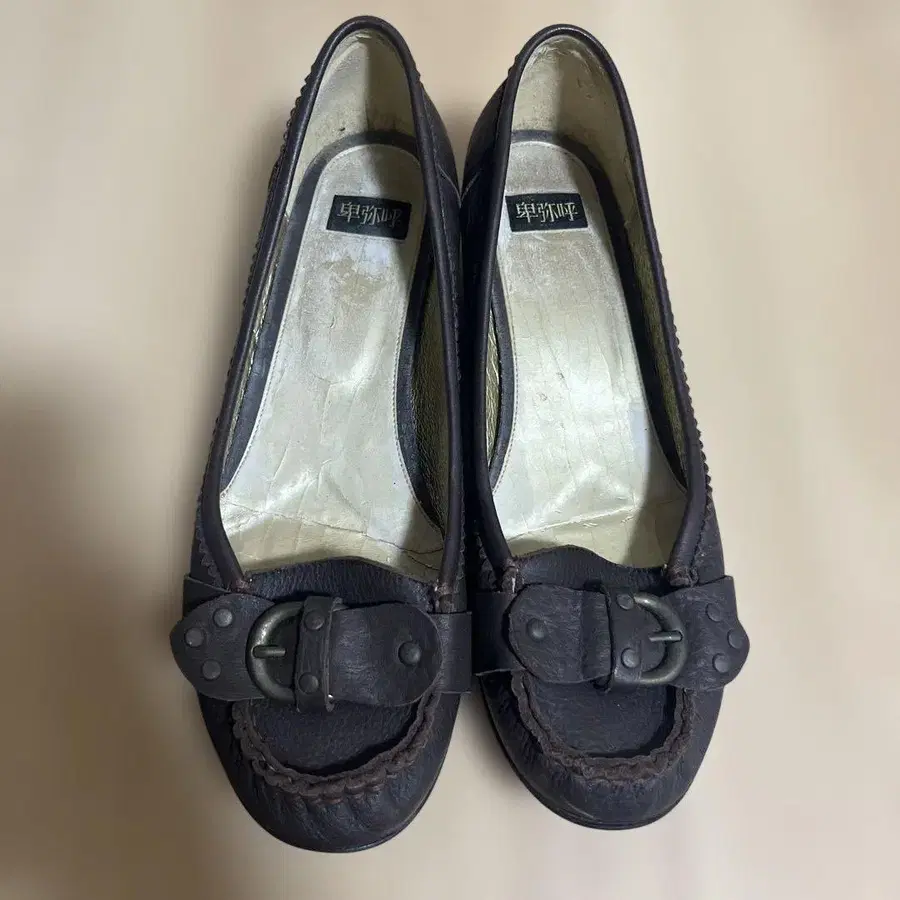 히미코 다크 브라운 버클 달린 가죽 펌프스