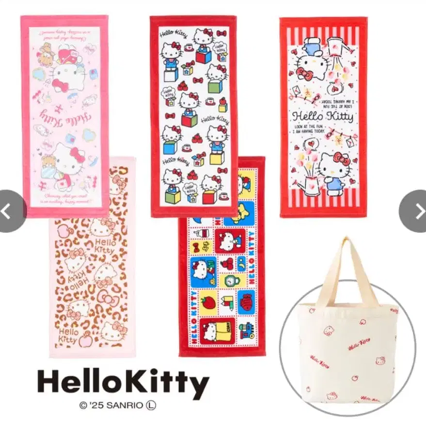 시마무라 헬로키티 해피백 페이스타월 5장 세트 토트백 포함 1