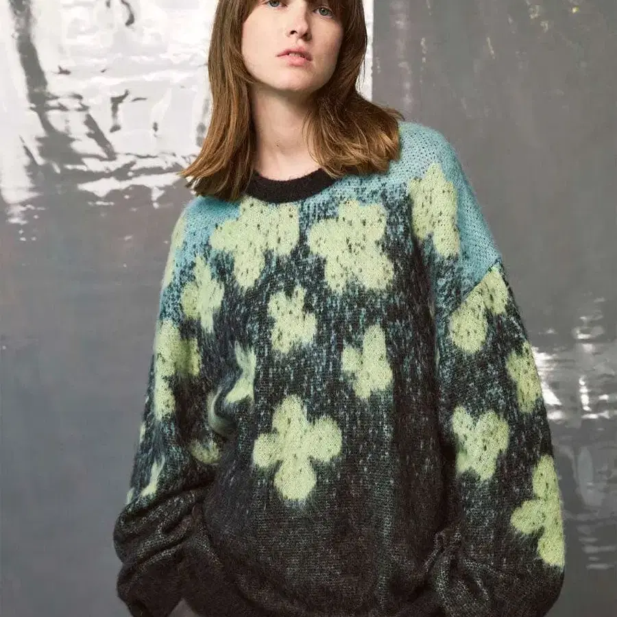 새상품 MAISON SPECIAL 플라워 그라데이션 모헤어 샤기 니트