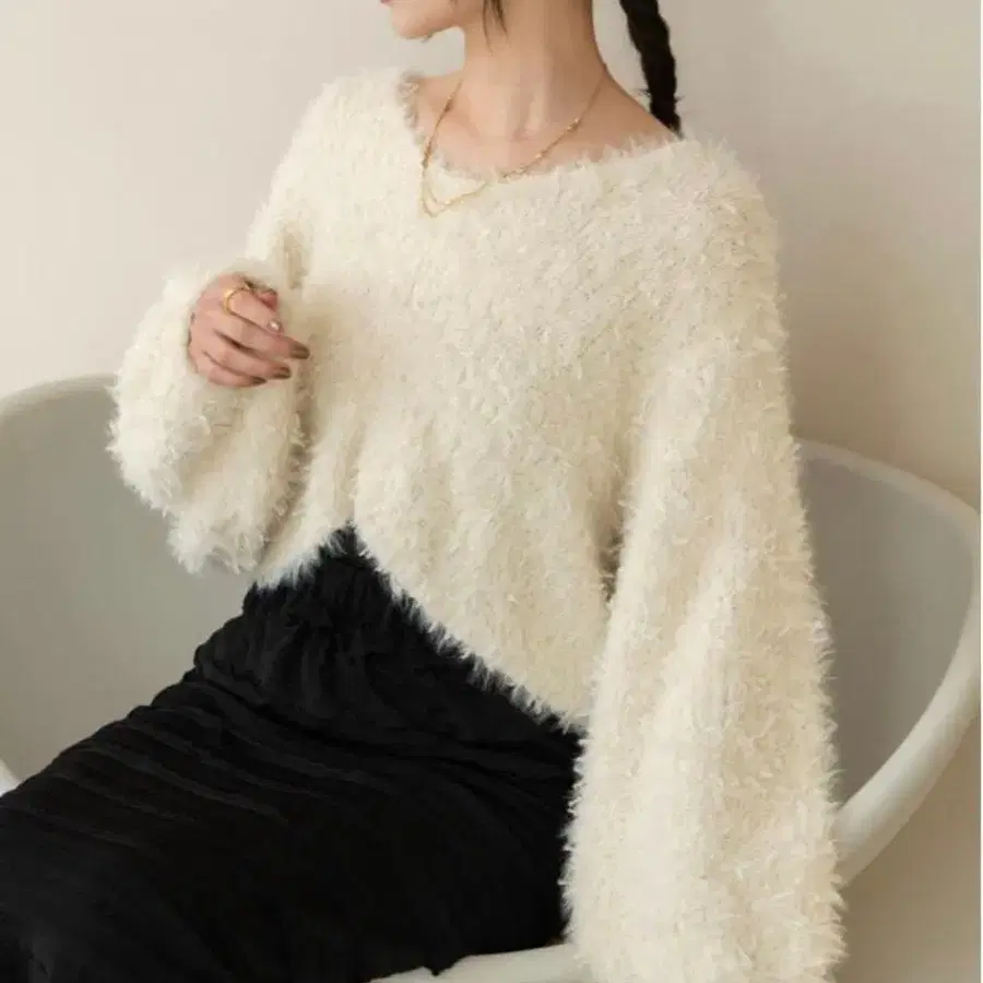 hinari 튤 리본 페더 니트