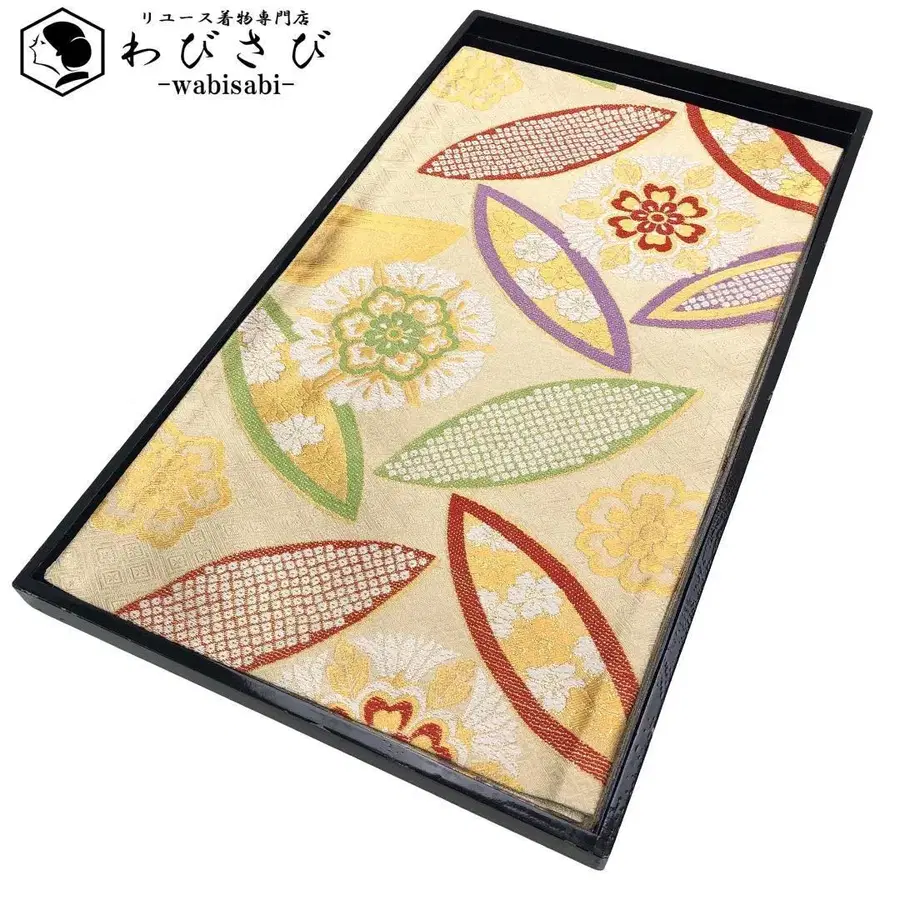 후쿠로 오비 꽃무늬 칠보 패턴 미색 금실 후리소데 O-5515