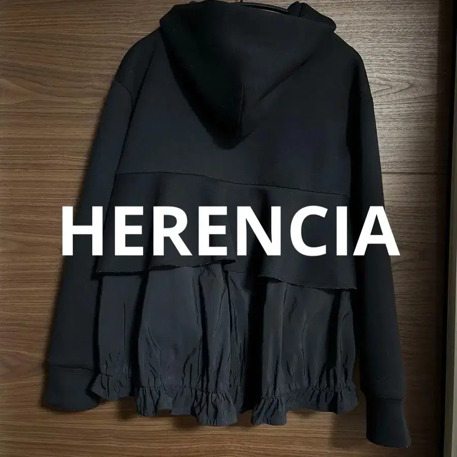 HERENCIA 블랙 후드 부착 프릴 후드티