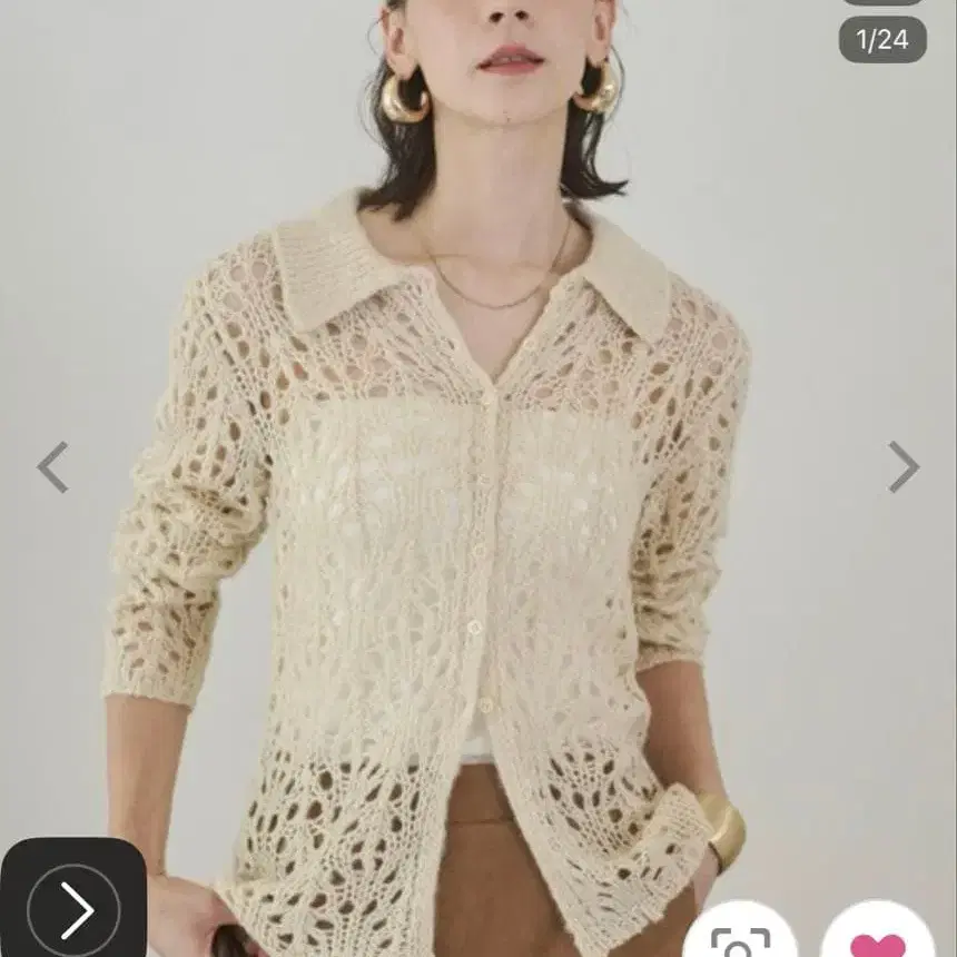 Angi 베이지 니트 편직 가디건 레이스 폴로 니트 가디건