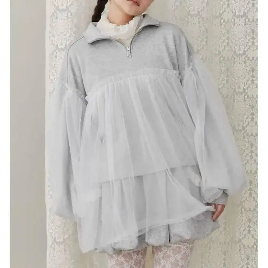 메리제니 튤 하프 ZIP 맨투맨 맨투맨 벌룬 미니 스커트