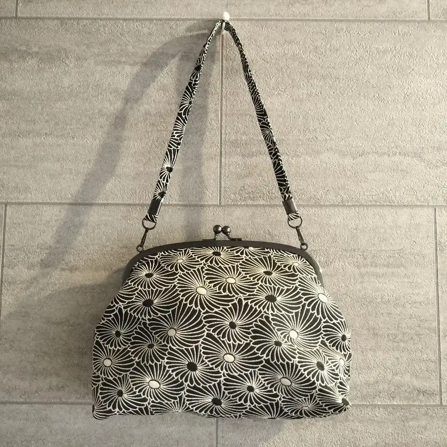 산비도 국화 패턴 가마구치 백 블랙 가마구치 핸드백 일본제 교토
