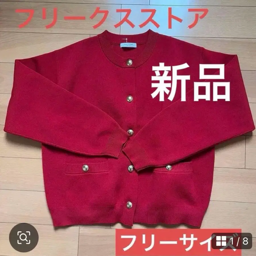 새상품 프리크 스토어 여성용 빨간색 가디건 골드 버튼 프리 사이즈