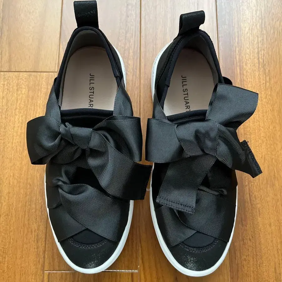 새상품급 현행 모델 JILL STUART 블랙 리본 스니커즈 반짝이 23