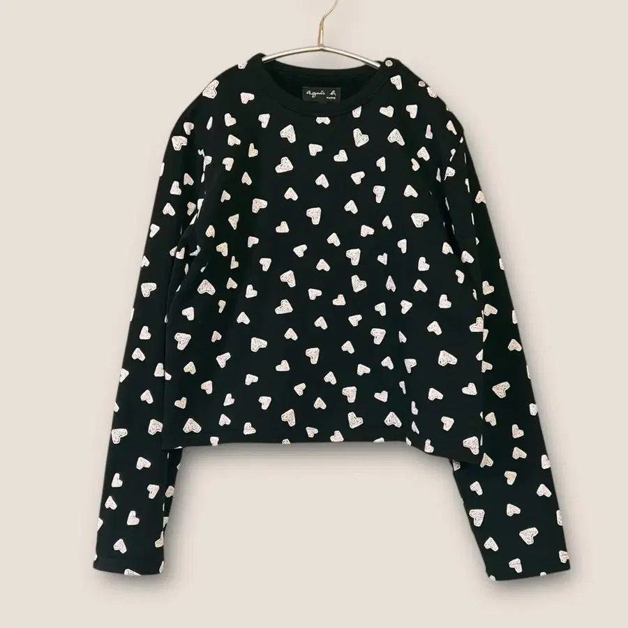 새상품급 에네스베 하트 올 패턴 맨투맨 블랙 긴팔 크롭 기장