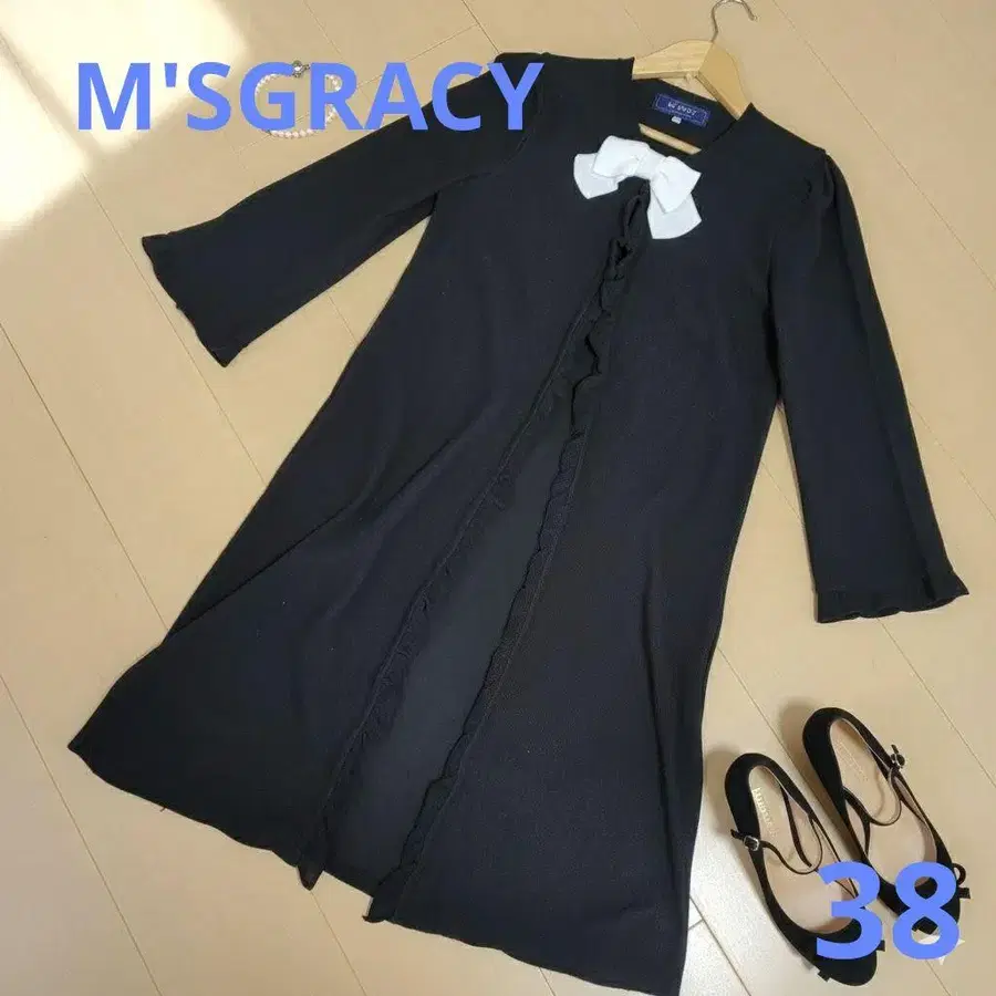 M'SGRACY [새상품급] 리본 달린 롱 가디건 프렌치 걸리시 블랙