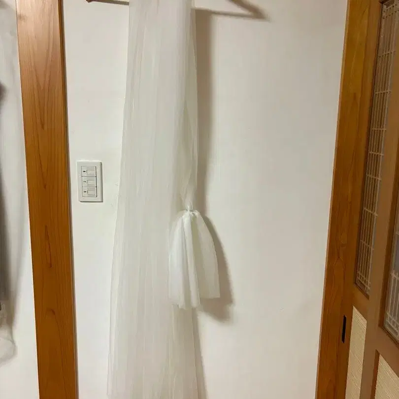 화이트 튤 웨딩 베일 화이트 튤 백리본