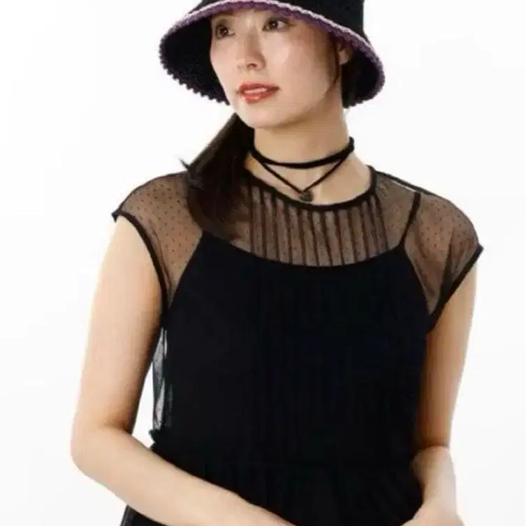 안나수이 와플 니트 크로셰 햇 블랙 모자