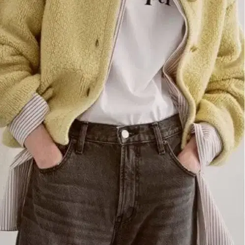 MilaOwen 파일 편직 숏 기장 금장 버튼 니트 자켓