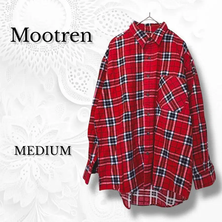 [무토 렌] 체크 무늬 플란넬 셔츠 빨간색 M 사이즈