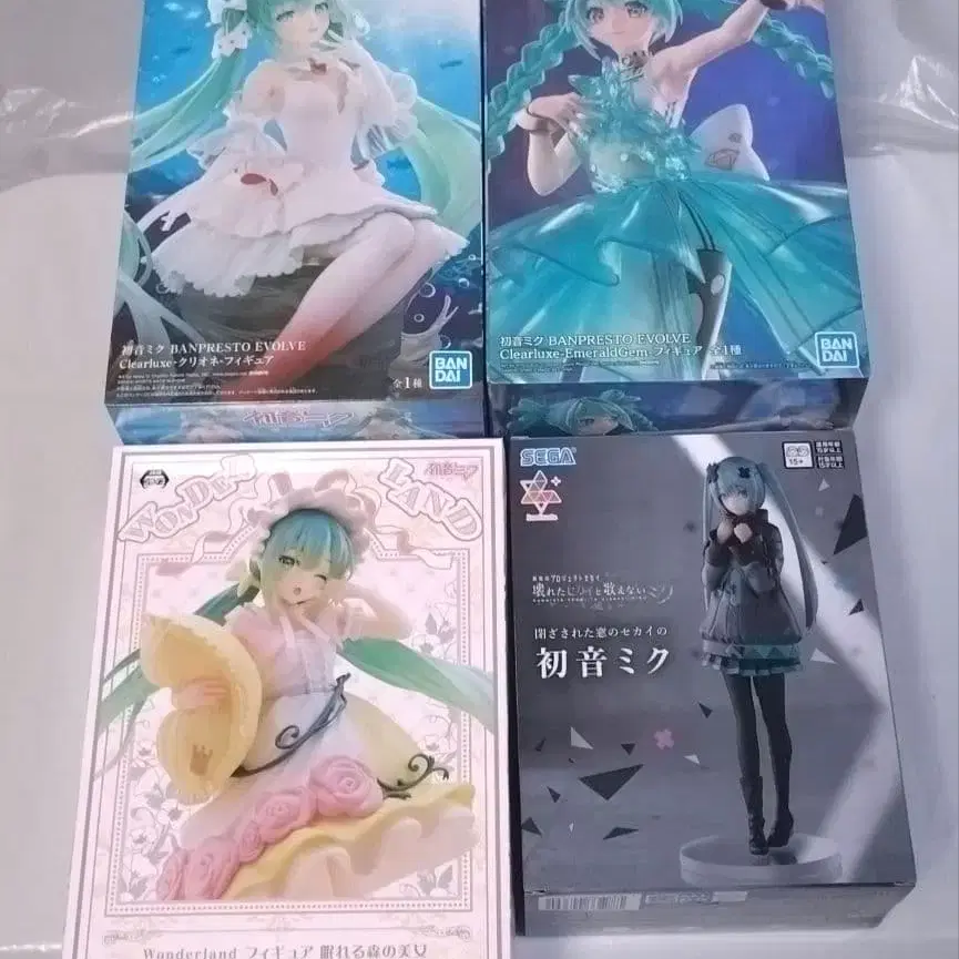 하츠네 미쿠 BANPRESTO EVOLVE Clearluxe - 클리오네 - 피규어 하츠네 미쿠 BANPRESTO EVOLVE Clearluxe - EmeraldGem - 피규어 하츠네 미쿠 Wonderland 피규어 잠자는 숲속의 미녀 Luminasta 닫혀진 창의 세계의 하츠네 미쿠 미개봉 4세트입니다. 발송은 아래와 같이 발송합니다. 상자 그대로 필름 포장 → 묶어서 에어캡 포장 → 종이상자 포장 낱개 판매는 불가합니다. 가격 인하에 관한 댓글은 삼가해 주십시오. 인형뽑기 경품 피규어이므로, 상자에 흠집이나 찍힘, 얼룩 등이 있을 수 있습니다. 미개봉품이므로, 개봉 후의 결함에 대해서는 제조사 측으로 문의해 주시기 바랍니다. 상기 내용을 이해하신 경우에만 구매 부탁드립니다. 프라이스 HATSUNE MIKU EPEV 묶음 판매