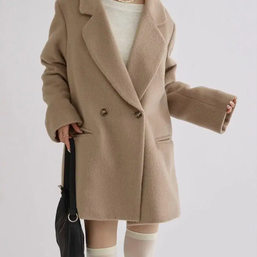 mystic 샤기 더블 자켓 카멜