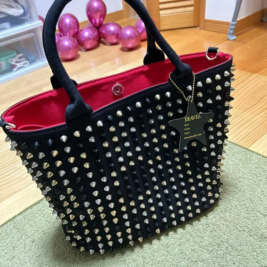 DIAVEL 스터드 토트백 블랙/레드