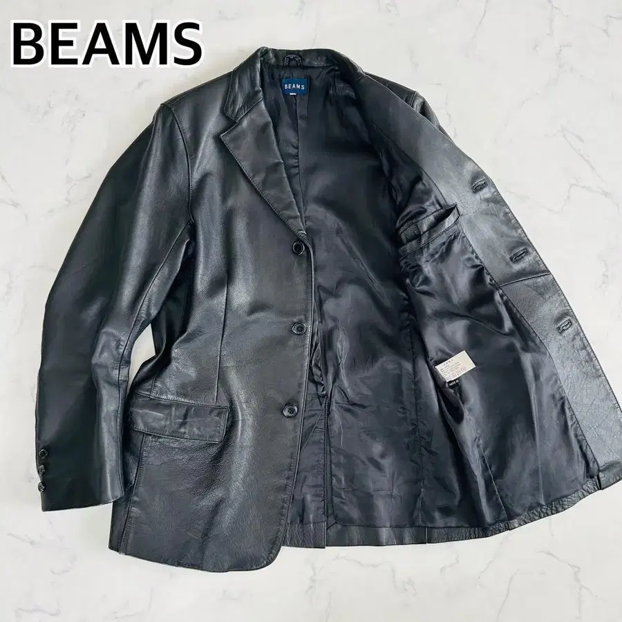 [ 새상품급 ] 빔즈 가죽 테일러드 자켓 소가죽 주름 가죽 블랙 M