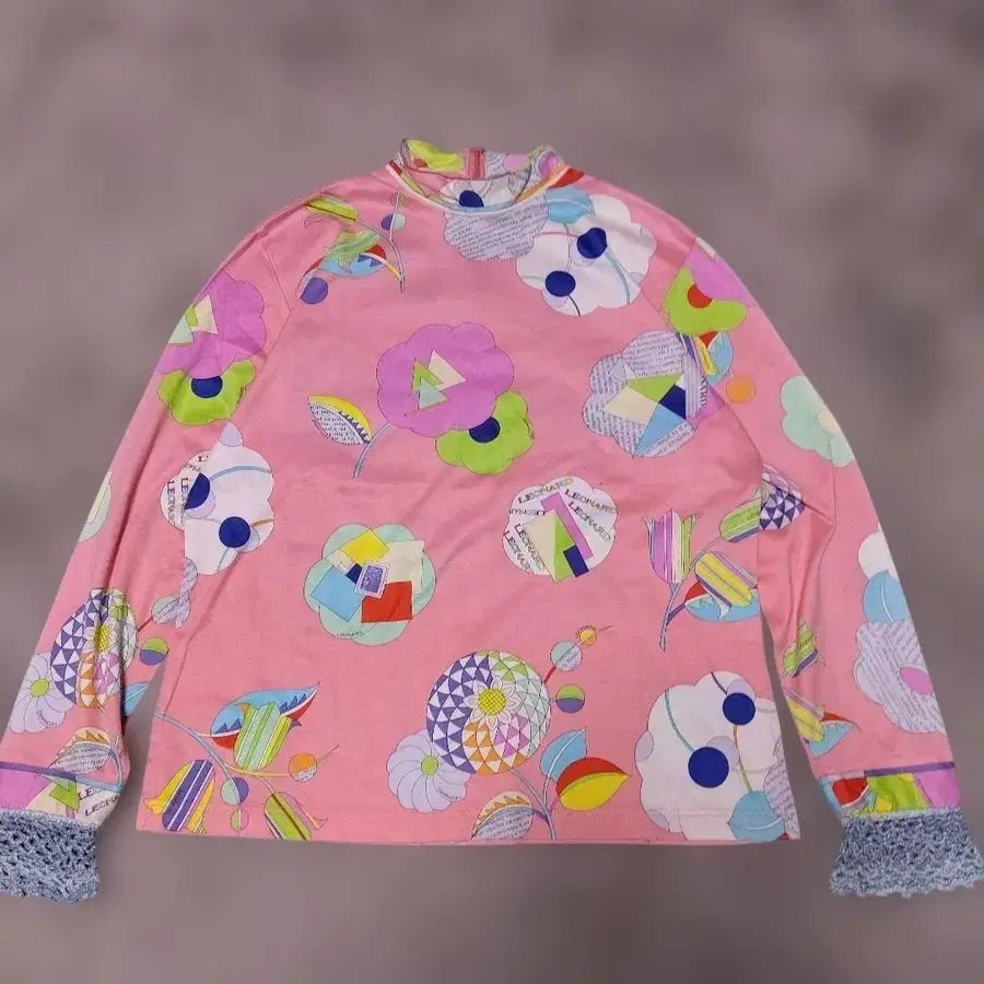 LEONARD SPORT 꽃무늬 긴팔 하이넥 상의