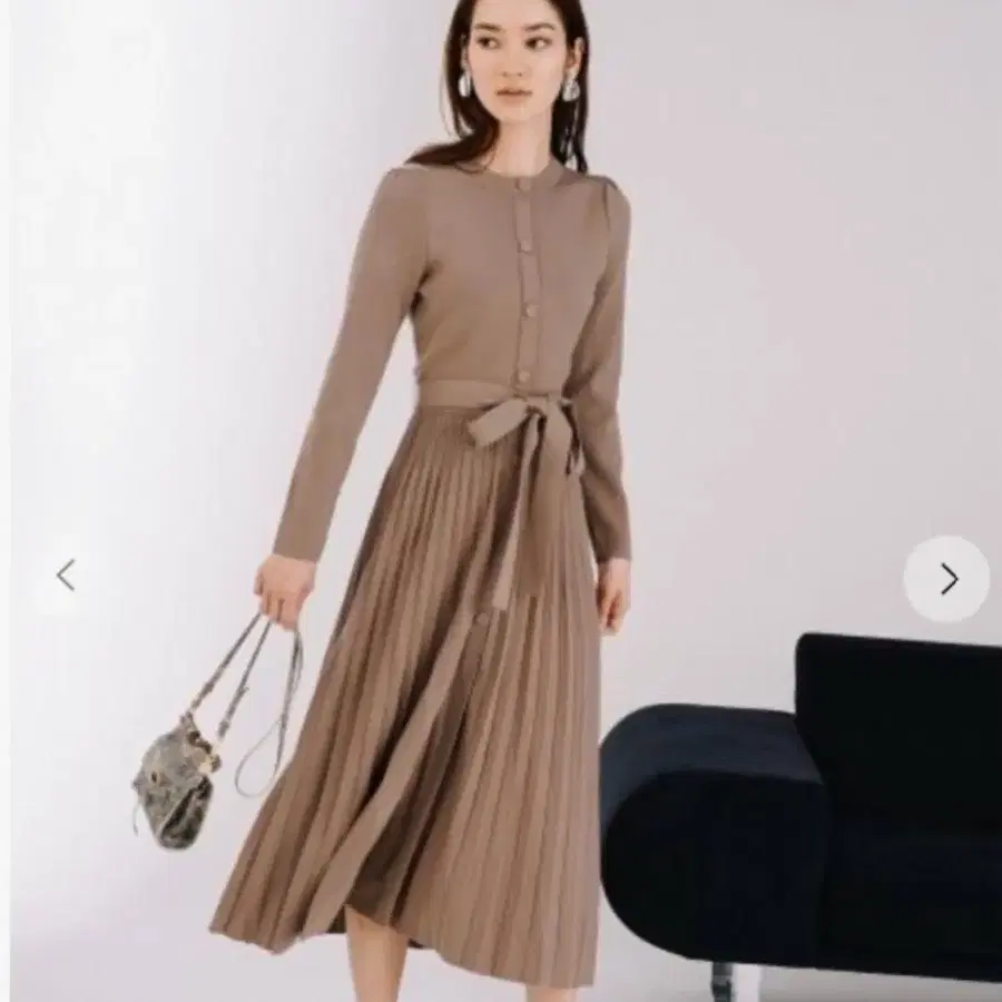 가디건 같은 프론트 오픈 디자인에, 스커트 부분에는 턱 플리츠를 넣어 고급스러운 마감의 니트 원피스입니다. 허리는 밴딩 사양이라 입고 벗기 쉬우며, 스트레스 프리한 착용감입니다. 큰 사이즈의 쿠루미 버튼이 디자인의 악센트가 되어, 어떤 장소에서도 착용할 수 있는 것도 기쁜 포인트입니다.