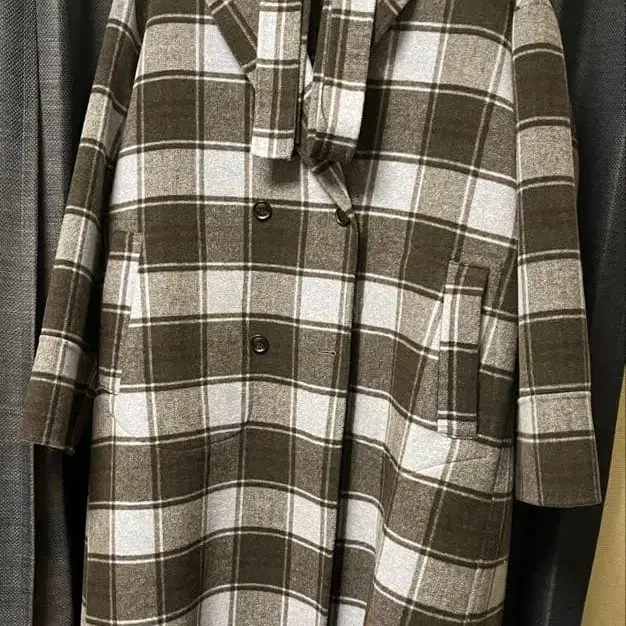 지나시스 체스터 코트 울 롱 리버 체크 올 패턴 벨트