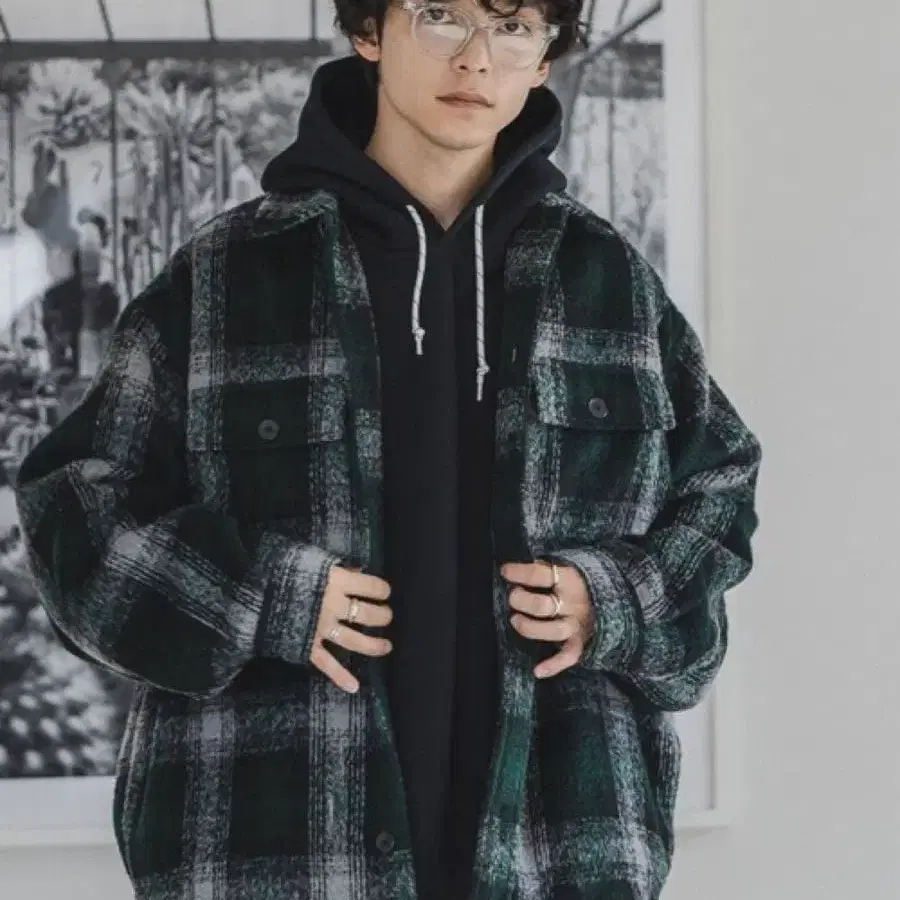 RAGEBLUE 샤기 체크 자켓 M 사이즈