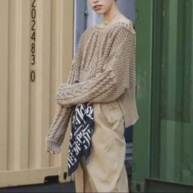 juemi 주에미 케이블 숏 기장 니트 비대칭