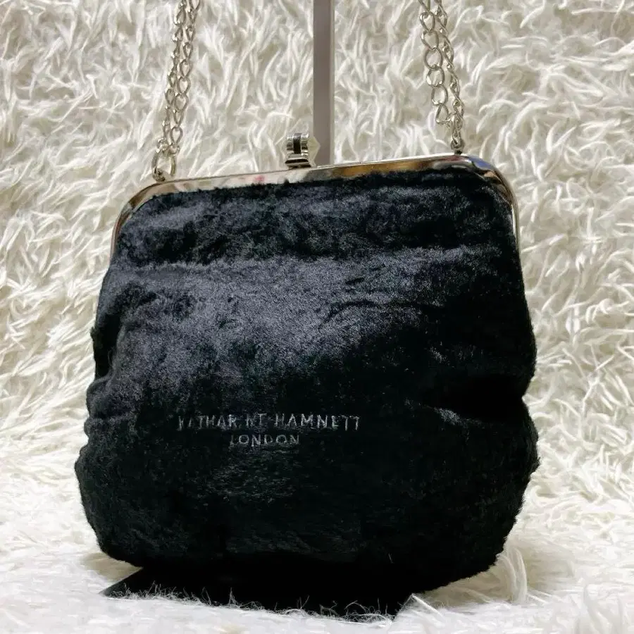 캐서린 햄넷 가마구치 체인 숄더백 인조 모피 블랙