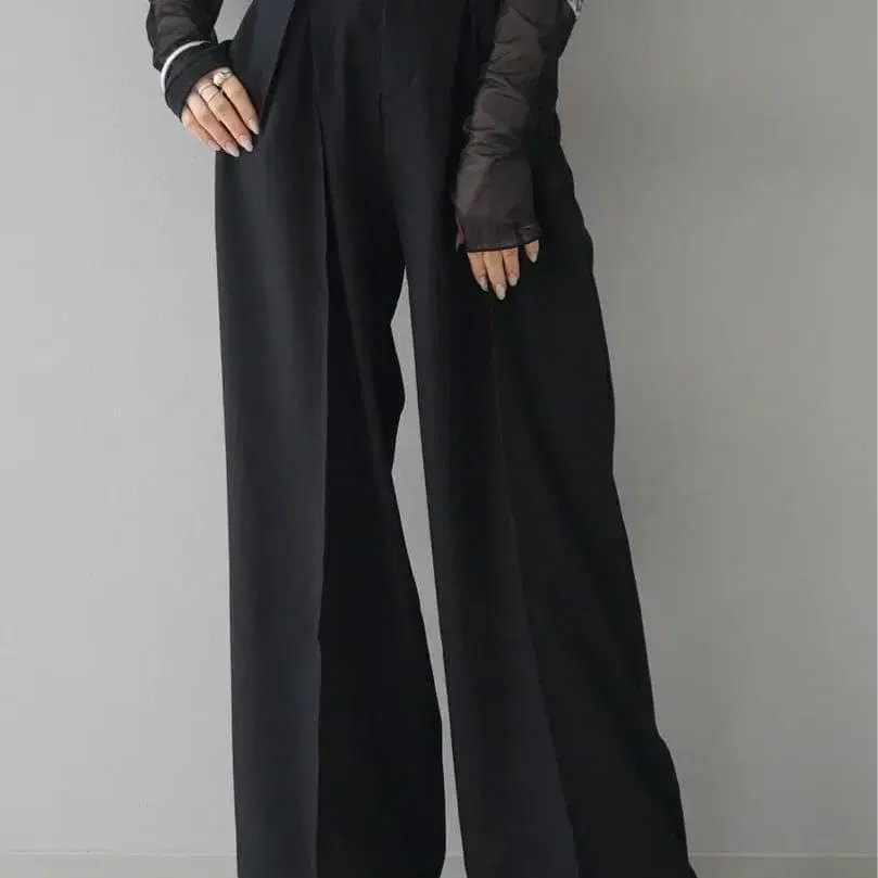 Lumier 디자인 턱 와이드 팬츠/블랙 S 사이즈