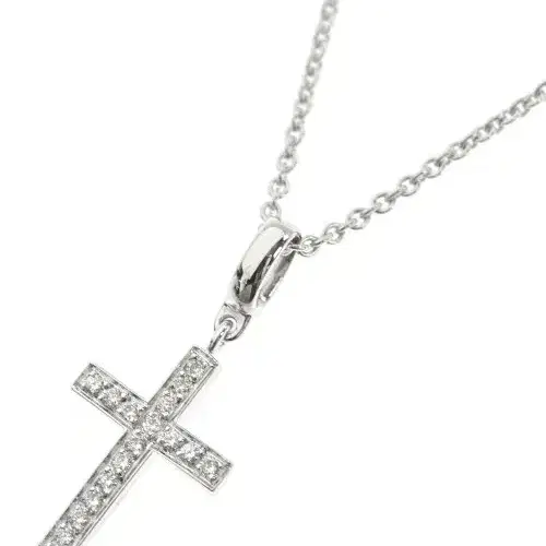 [ 코멘트 ] 주얼리 크로스 다이아몬드 목걸이 K18WG/750(화이트 골드) 다이아몬드 새상품급으로 마감 완료