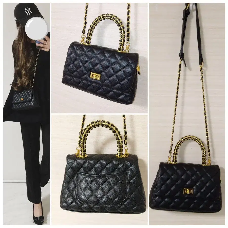 퀼팅 숄더백 블랙