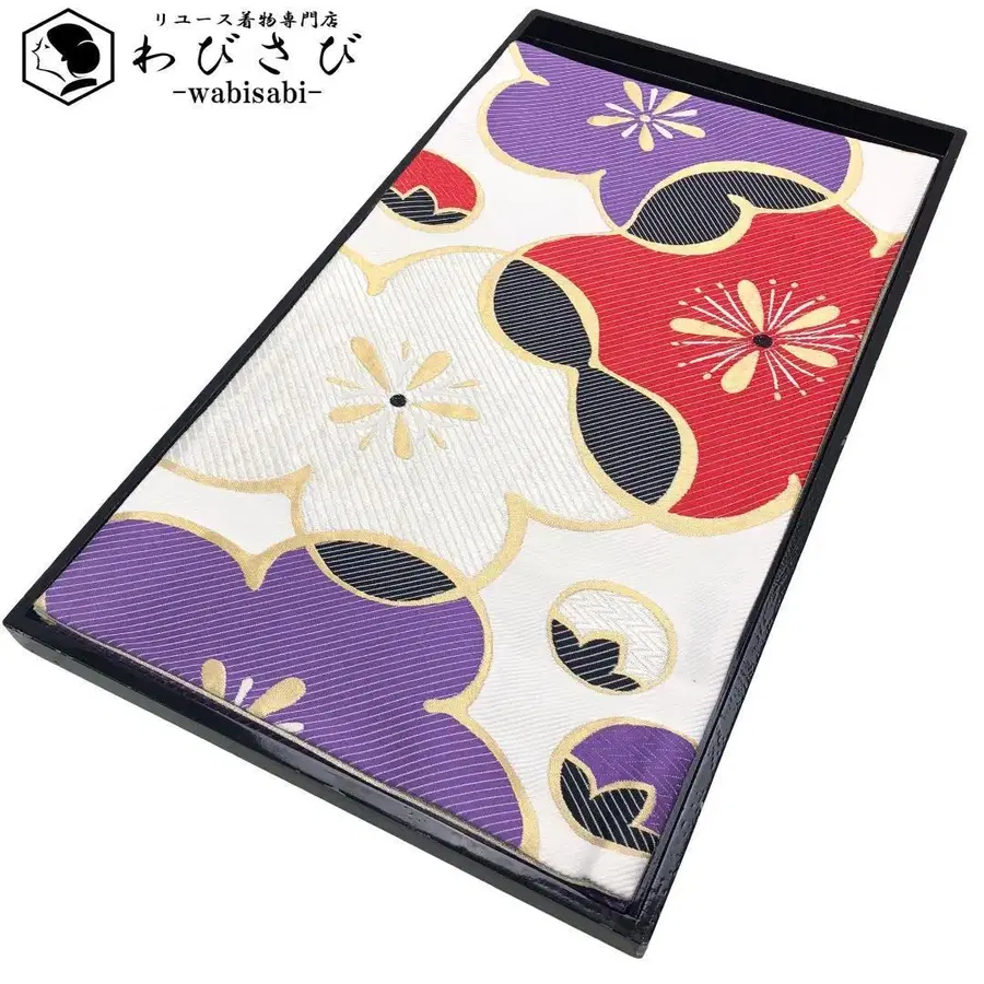 후쿠로 오비 매실 꽃 무늬 화이트 컬러 후리소데 O-5513