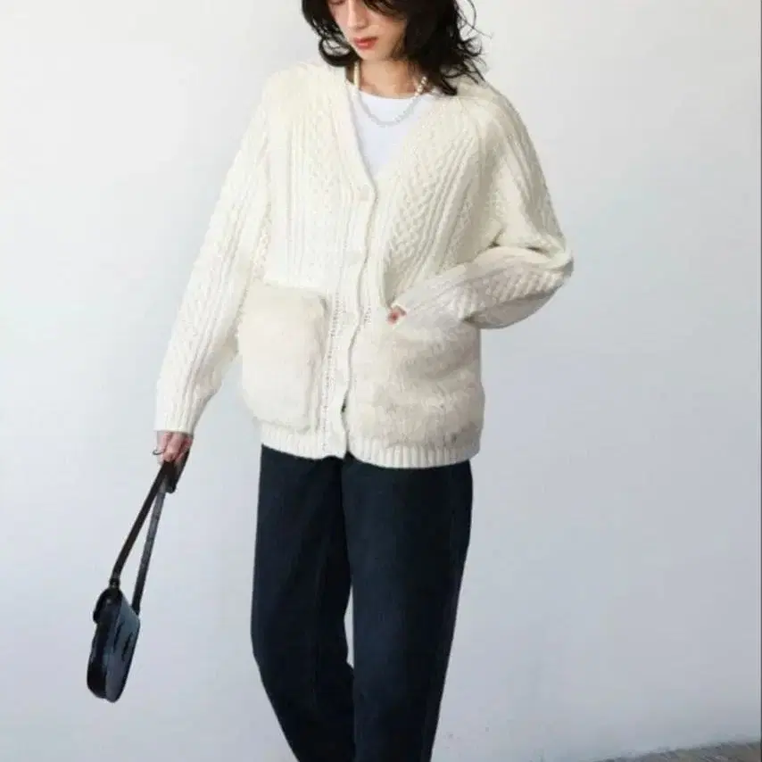 ELFRANK 퍼 포켓 V넥 니트 가디건
