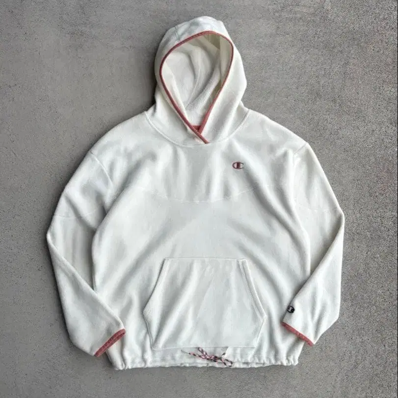 00s 챔피온 구제 의류 플리스 풀오버 후드티 파이핑 화이트 핑크