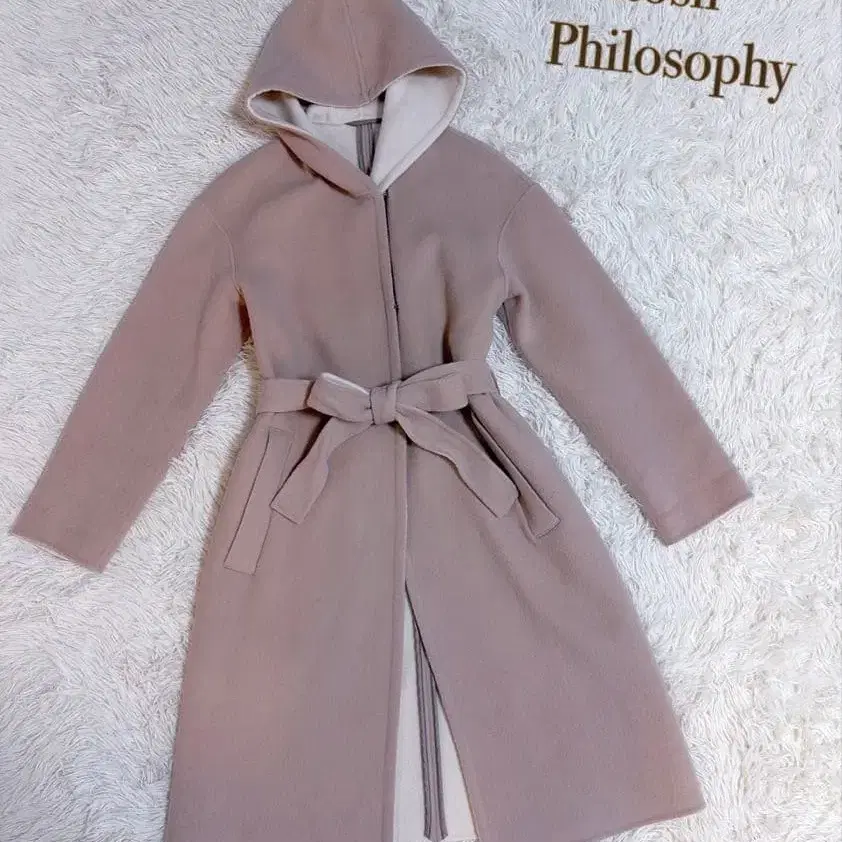 새상품급 매킨토시 후드 부착 코트 핑크 36 S