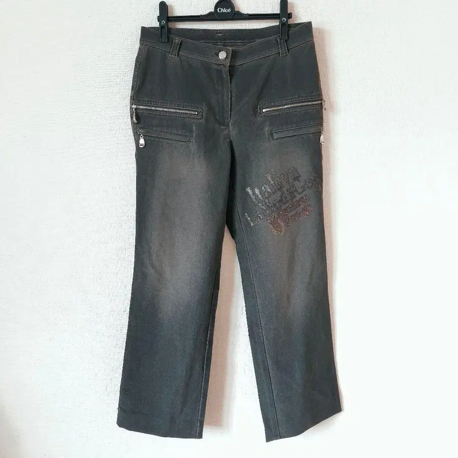 이타리야 다크 그레이 지퍼 포켓 스트레치 팬츠 11호 라메 프린트