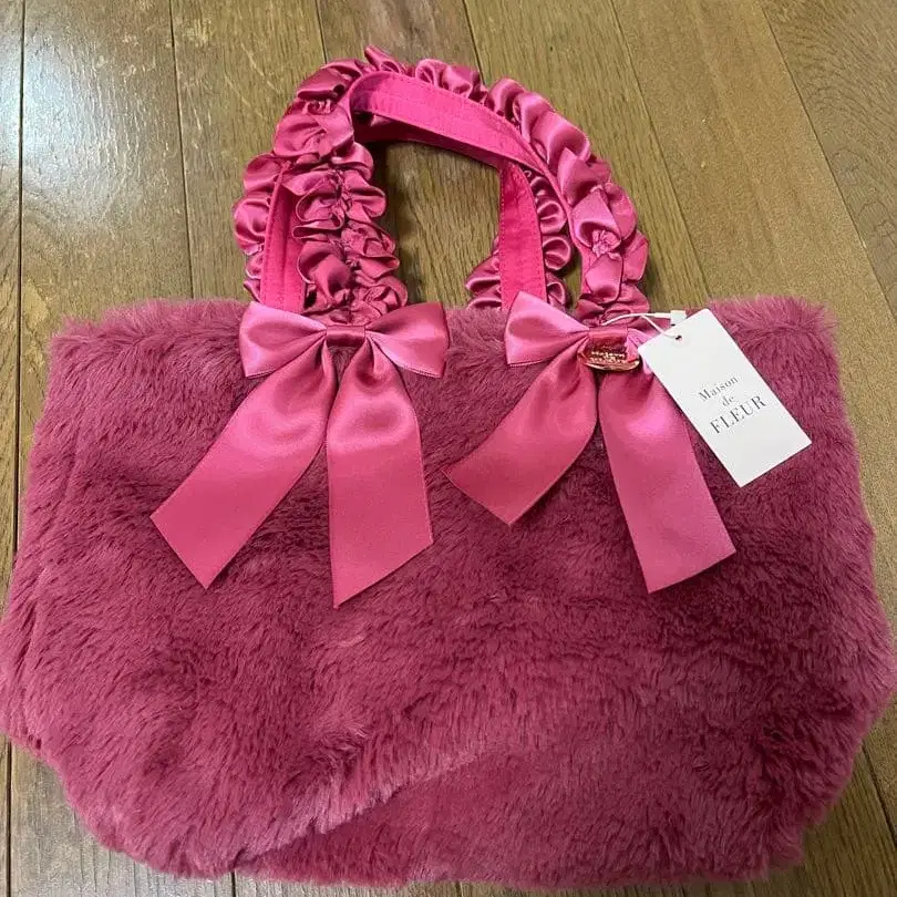 최종 가격! 택 포함 메종 드 플뢰르 퍼 리본 레이스 핸들 토트백
