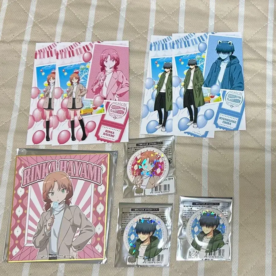 암살교실 요미우리랜드 캔뱃지 색지 특전 엽서 치바 류노스케 하야미 린카