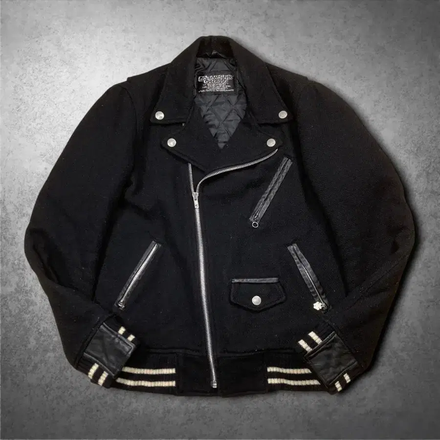 라이더 재킷에서 유래한 디자인을 울 소재로 고급스럽게 풀어낸 아이템.