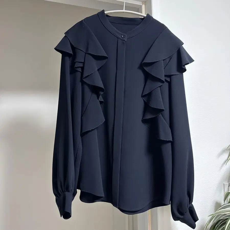 [ M-PREMIER ] 프릴 블라우스 네이비
