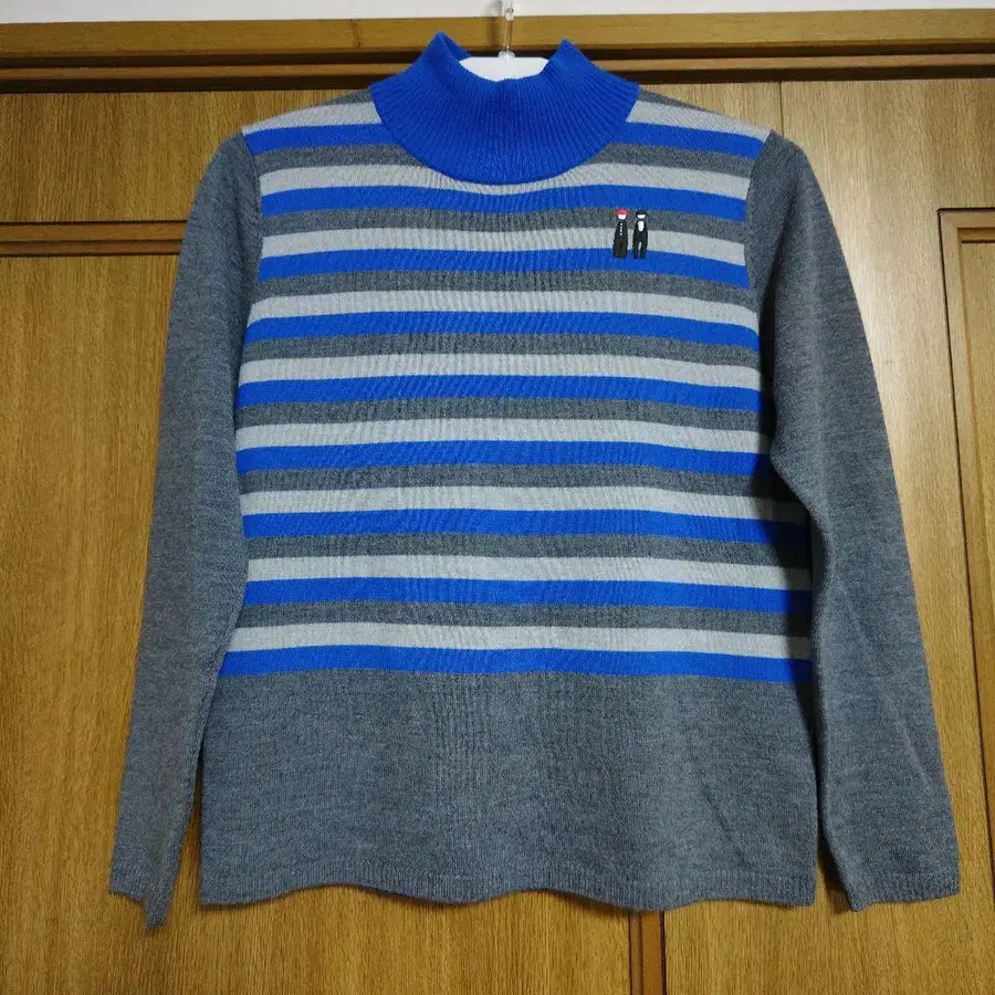새상품급 PICONE 그레이와 파랑 스트라이프 하이넥 스웨터