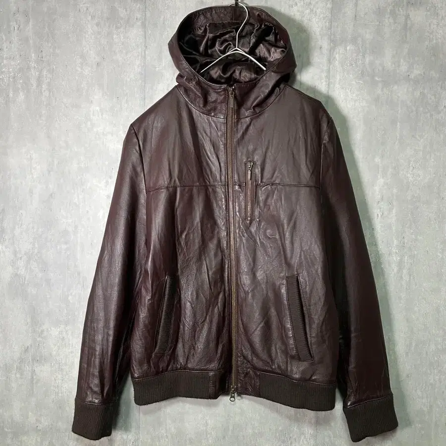 그런지 가죽 지퍼 후드티 브라운 천연 가죽