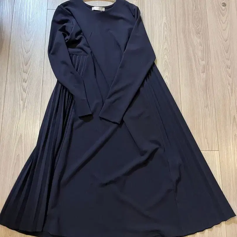 네이비 긴팔 플리츠 원피스