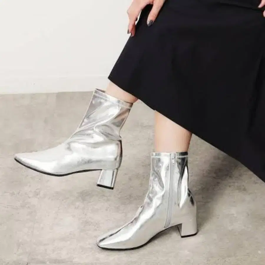 하프 부츠 숏부츠 부티 메탈릭 실버 보아