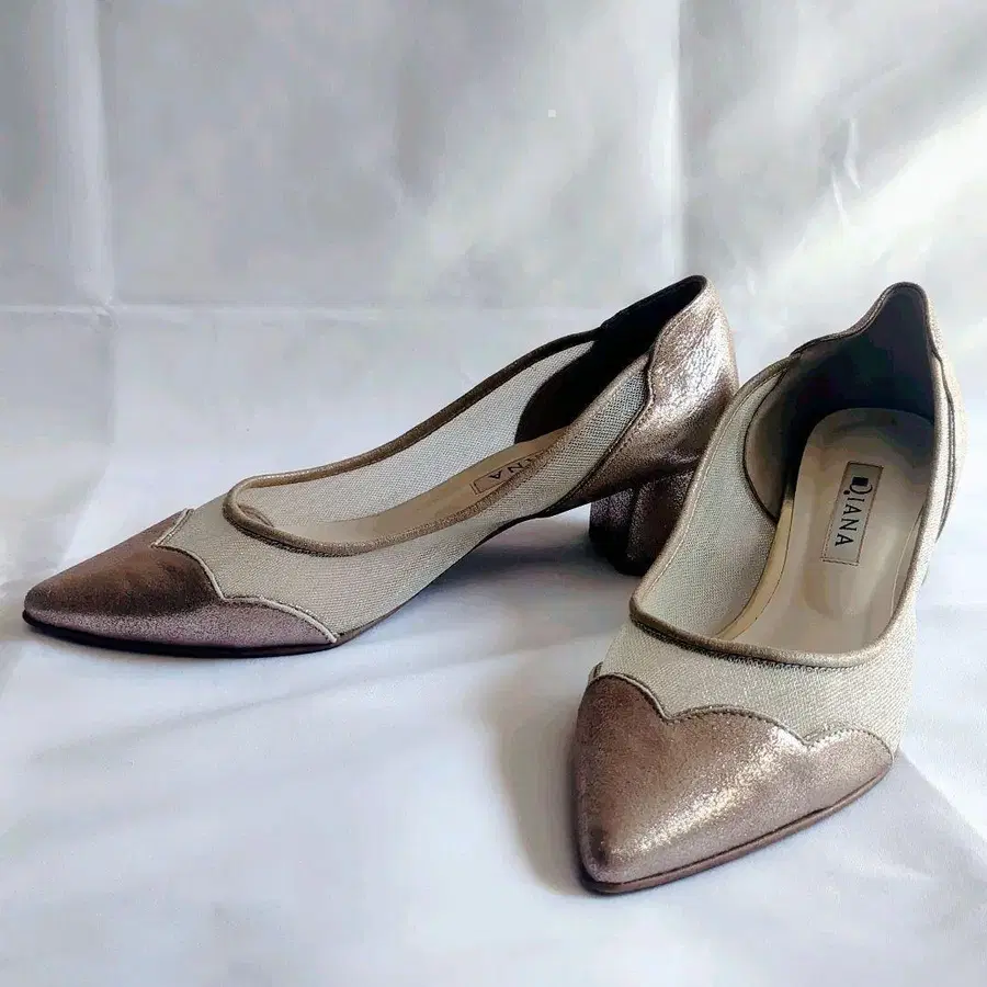 다이애나 튤 펌프스 포인트 골드 라메 22.5