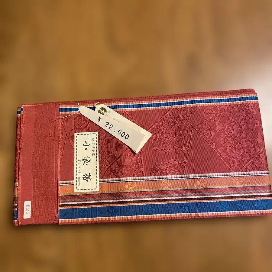차분한 빨간색 꽃무늬 직물 스트라이프 직물 반폭 오비 22,000엔