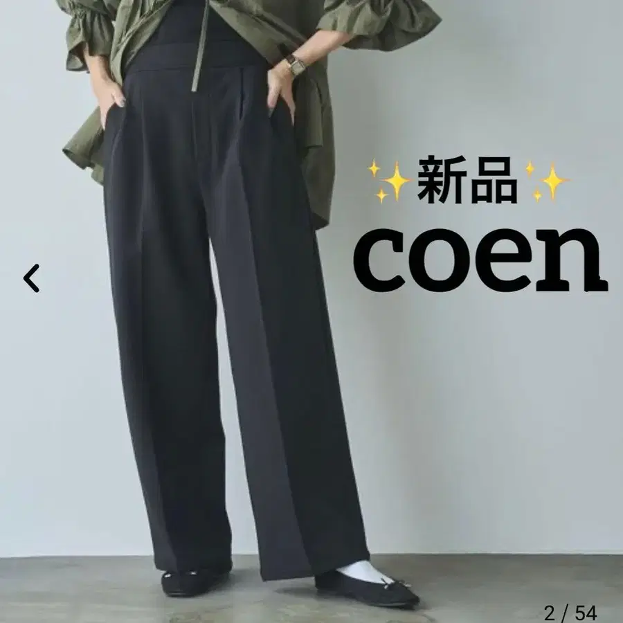 와이드 실루엣이지만 센터 프레스가 있어 샤프하게 연출 가능하며, 업무복으로도 활용도가 높습니다.