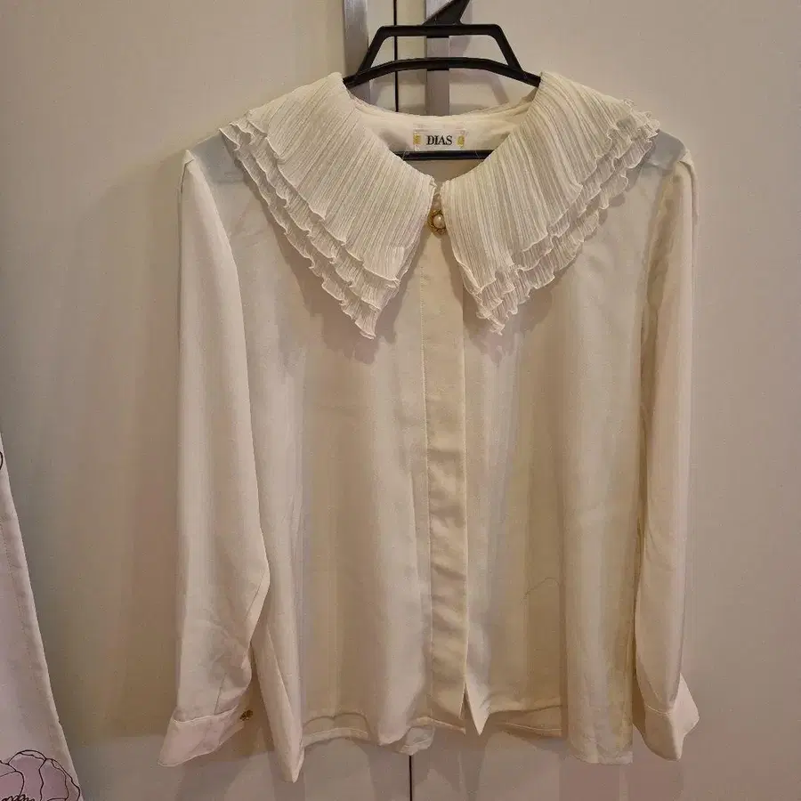 DIAS 아이보리 플리츠 옷깃 긴팔 블라우스